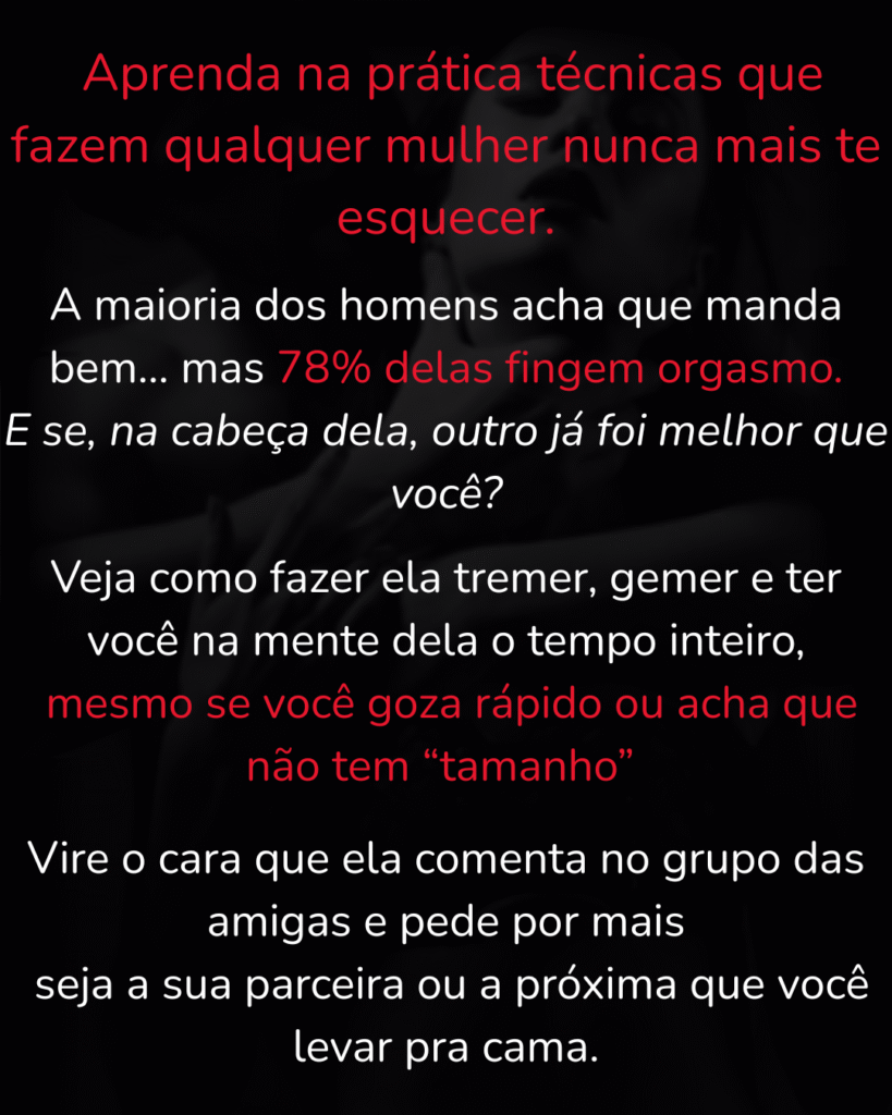 👉 A maioria dos cursos ensinam o que todos já sabem, nosso treinamento é focado em técnicas que poucos homens sabem e que são poderosas.